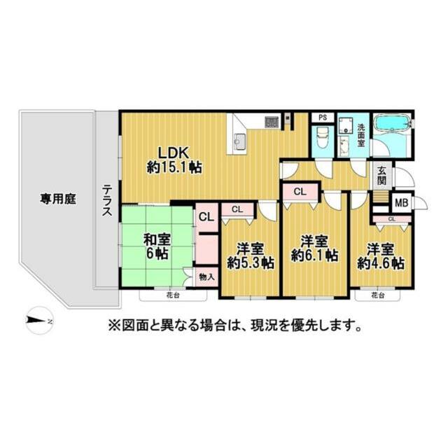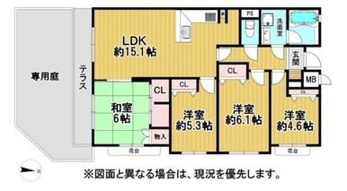 | 間取り(内訳) | 4LDK(和室6/洋室6.1/洋室5.3/洋室4.6/LDK15.1) | ||
